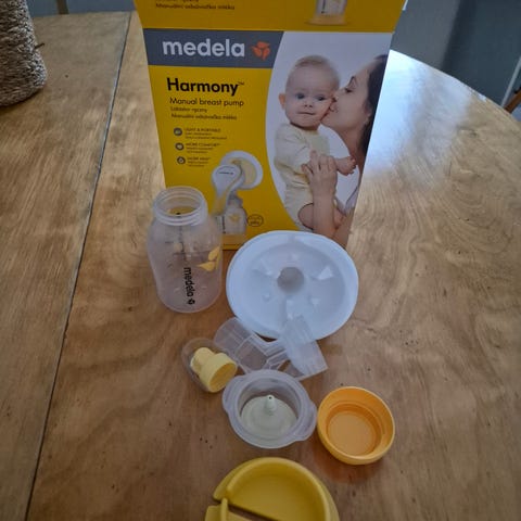 Medela Harmony käsikäyttöinen rintapumppu, manuaalinen malli. Ollut käytössä vain muutaman kerran eli uudenveroinen. Kaikki osat ja ohjekirja tallella.