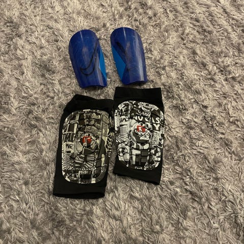 Säärisuojat. Koko L. Kaksi paria 10 €.