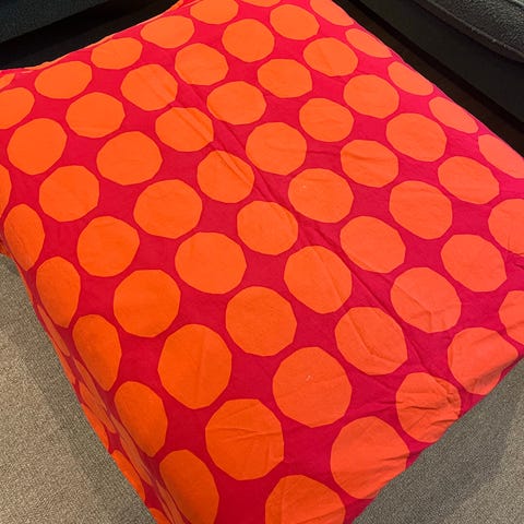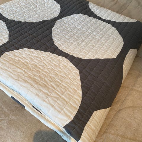 Marimekko Tiiliskivi päiväpeitto, jonka koko on 260 x 260 cm.
