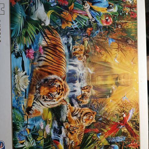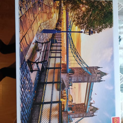 Hyväkuntoinen palapeli, purettuna omassa laatikossaan.