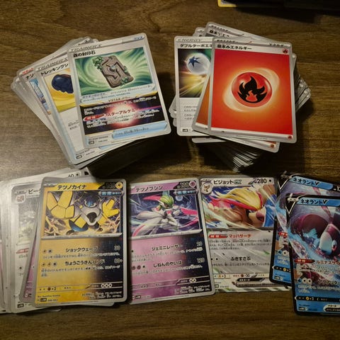 Pelkkiä pokemoneja, ei trainer- tai energy-kortteja. Yksittäisiä holoja voi olla seassa. Sekalaisista seteistä eri vuosilta.