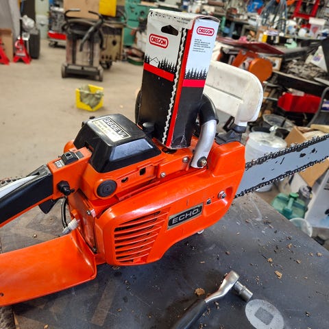 Echo dcs-310 akkumoottorisaha. Ilman akkua ja laturia, ketju vaatii vaihdon!
