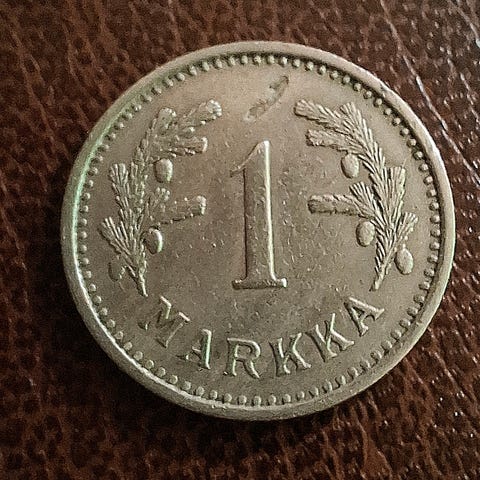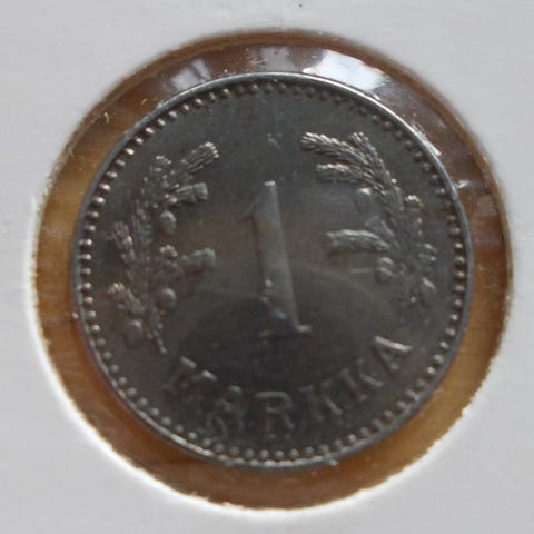 Hyväkuntoinen jatko-sodan aikainen Suomen markka. Paino 4g.