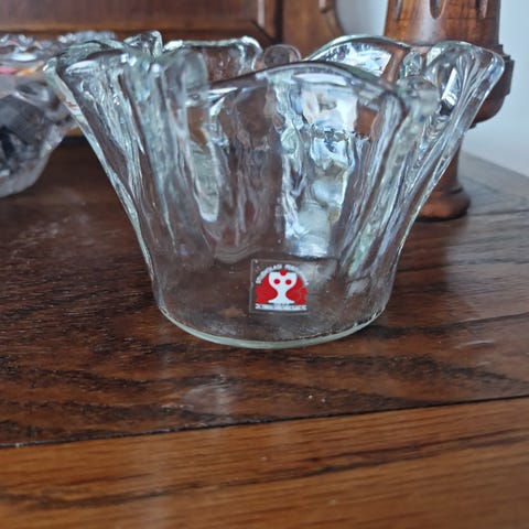 Myydään kaunis Studiolasin Pertunmaa vintage maljakko sinisellä alaosalla.