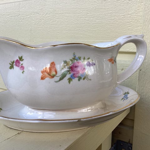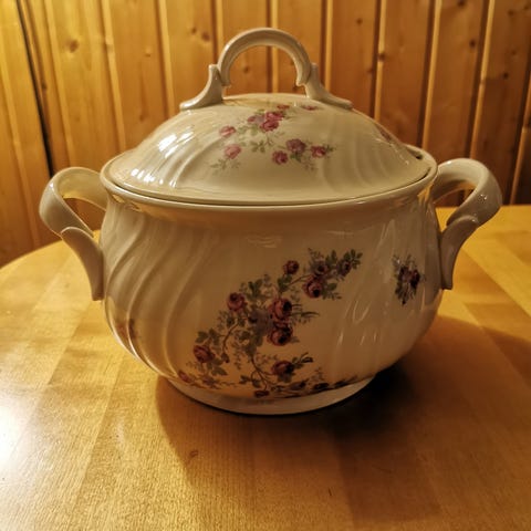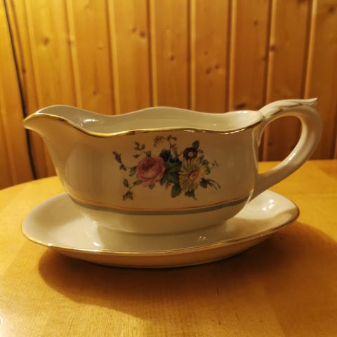 Myydään Arabian Pikkuruusu kastikekaadin. 1940 / 1950 luvulta. Hyvässä kunnossa, ei lohkeamia tai halkeilua. Korkeus 10,5cm, tilavuus 0,4l.