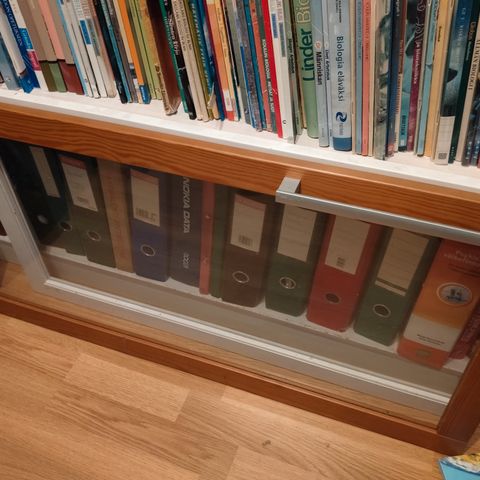 Lundia-hyllyjärjestelmän lasiovi. Lundian oma tammen värinen petsaus. Erinomaisessa kunnossa, mukana saranat! Ovia 4 kpl a 60 euroa. Vain nouto. Tarjolla myös tikkaita, hyllyjä, laatikoita ja umpiovia!