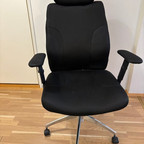 Hyväkuntoinen työtuoli. Toisessa kädensijassa pieni rikkouma ja pläntti punaista tussia (tai vastaavaa väriä). Nouto Vuosaaresta Helsingistä.