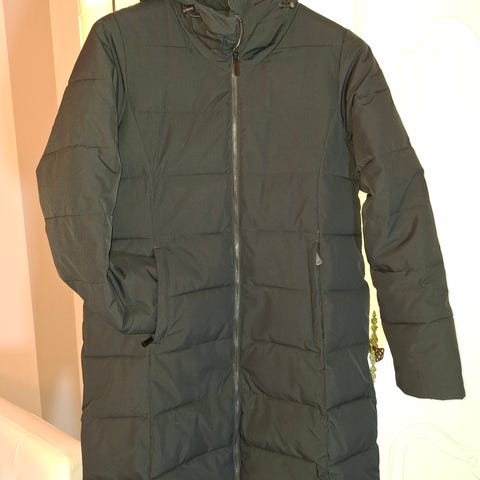 Lähes pitämätön talvitakki, materiaali likaa ja vettä hylkivää. 4 taskua etupuolella, 2 sisäpuolella, hihansuussa lumilukot, peukalolle paikka, helmassa myös lumilukko ja kiristysnyöri.