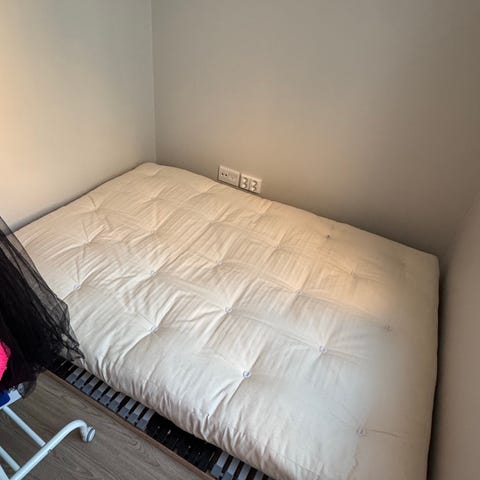 Hyväkuntoinen 140 cm * 200 cm futonpatja. Patjaa on suojannut aina petauspatja, eikä ole ollut lemmikkitaloudessa. Nouto Tapiolasta tai toimitus Espooseen tai Helsinkiin 31.1. - 1.2.