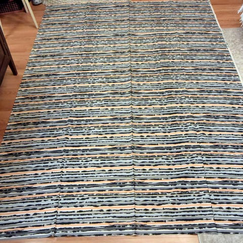 Kristiina Koskivuori Tampella kangas 130x195cm, oli pinkkiä rakastavan pojan ikkunaan verhoksi liian leveä enkä raaski kaventaa..