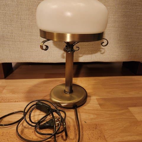 Vintage retro design Pöytälamppu lasivarjostimella ja metallijalustalla