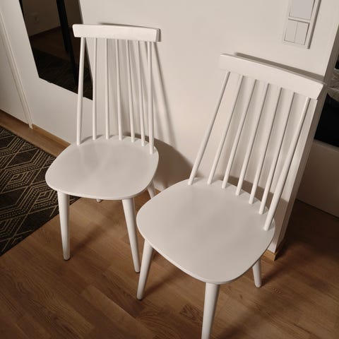 Tuolit on valmistettu puusta, maalattu mustaksi.