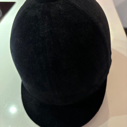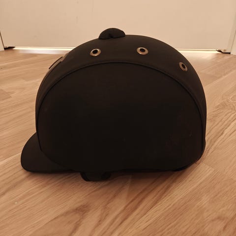 Hevostarvikkeet ratsastuskypärä mustalla hiilikuitukuvioinnilla. Kypärässä on säädettävä kokosäätö takana ja leukahihna. Soveltuu ratsastukseen ja tarjoaa pään suojaa. Merkkiä wembley. Kokoa XL