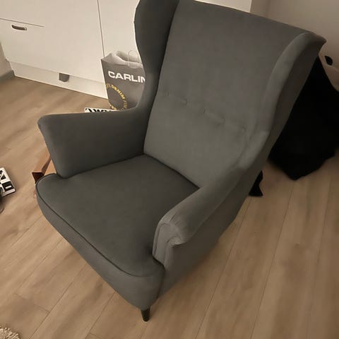 Myydään Ikea Strandmon nojatuoli + rahi. Nojatuolissa hieman kulumaa käsien kohdalla. Rahi kuin uusi! Tuoli poistumassa Ikean mallistosta, joten nyt on hyvä aika ostaa omasi.