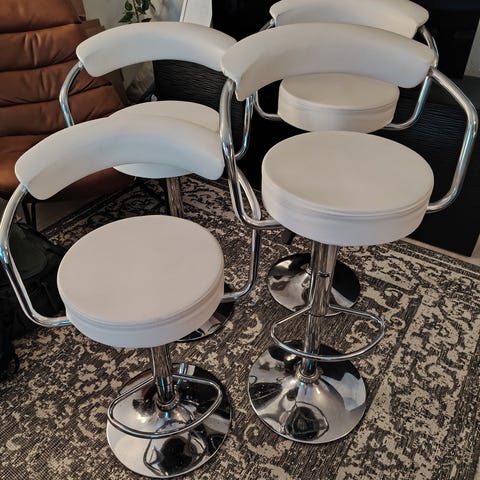 Hyväkuntoiset baarijakkarat. Istuinkorkeus noin 73cm. Todella mukavat ja pehmeät istua, ovat myös todella tukevat. Laita vaan viestiä, jos haluat lisää kuvia. Ehdota rohkeasti myös hintaa, neuvoteltavissa!