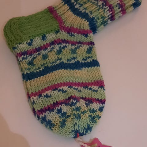Neulottu 7-veljestä Polkka-langasta.