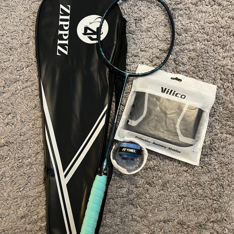 YONEX badmintonmaila, väriltään valkoinen ja sininen. Maila soveltuu sulkapallon pelaamiseen.hyväkuntoinen ja mukaan tulee wilssonin pussi