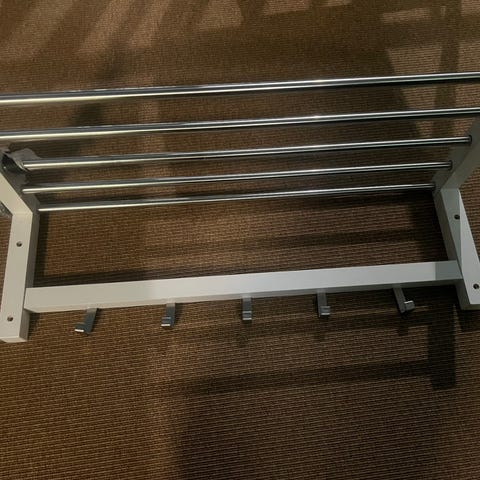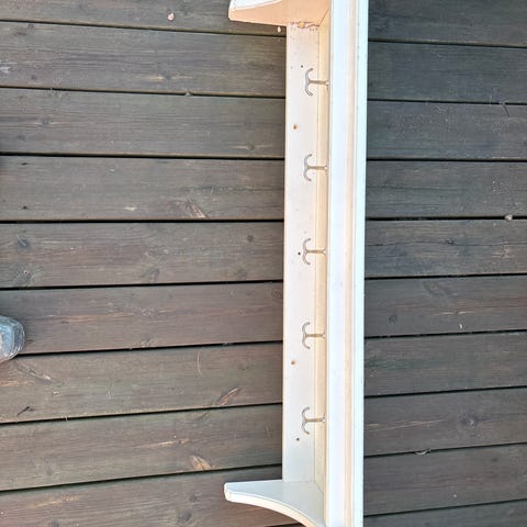 Ruuveilla seinälle kiinnitettävä hattuhylly/ naulakko.
