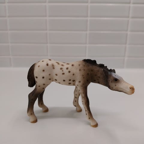Schleich knabstrupper ori, hiukan kulumaa hännässä ja takajaloissa (kts. kuva). Muuten hyväkuntoinen.