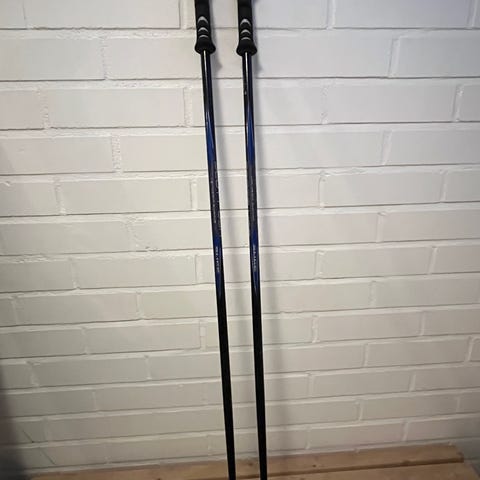 Atomic sauvat, 175 cm laskijalta. Toinen sauva on saanut vauhdista hieman taipumaa