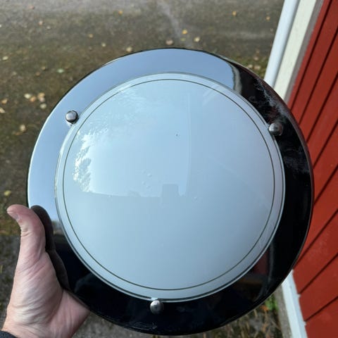 Messinkikehyksellä ja kirjavalla lasikuvulla varustettu plafondi