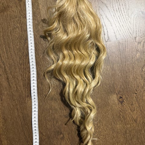 Käytetty kerran tai pari, hyvässä kunnossa. Käytön jälkiä ei paitsi hyvä harjata hiuslisäke läpi ettei mene takkuun.