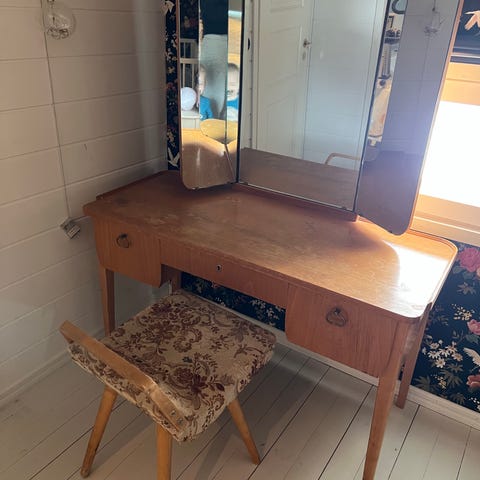Vanha vintage peili pöydälle, peililasi patinoitunut.