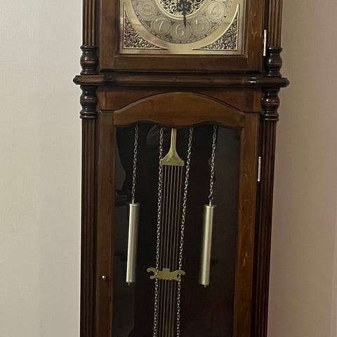 Vanha kaappikello puupinnalla, menee 2 osaan, ei toimi ollut koristeena, kaappiosa aukeaa.