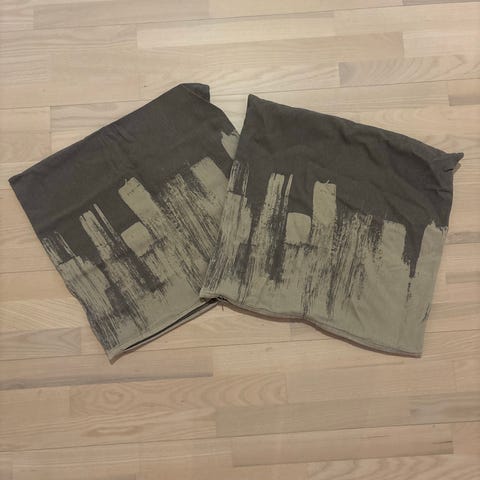 IKEA kangasliinat, joissa on kaksi erilaista kuosia. Yksi kangasliina on vaaleapohjainen, jossa on pitkänomaisia kukkakuvioita eri väreissä. Toinen kangasliina on tummanpunaruskea, jossa on vaaleita vaakasuoria viivoja. Kangasliinat soveltuvat esimerkiksi pöytäliinoiksi tai koristekäyttöön.