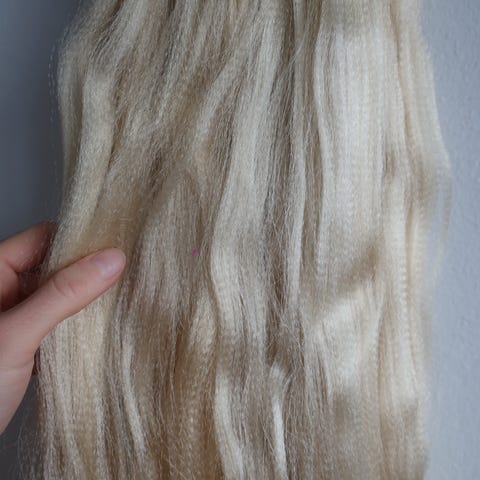 Vaalea/blondi kihara hiuslisäke, pituus noin 50cm.