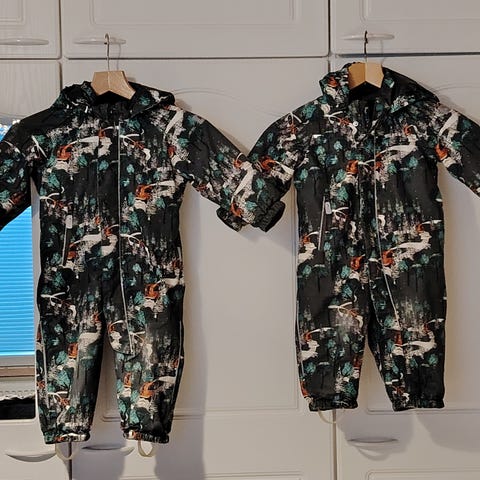 Käytetty kunto, polvissa ja pepussa pehmentymää, jalkalenksut ehjät molemmissa haalareissa.