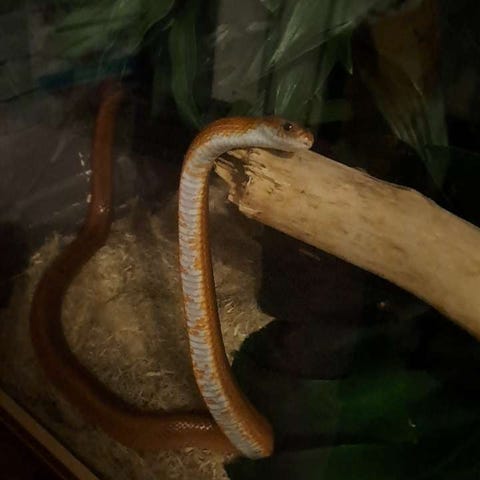 Pituutta käärmeellä reilu metri joten melko iso mato kyseessä. Syö ja luo nahkaa hyvin, yhden kerran koko aikana mitä minulla ollut on pitänyt noin 3kk paaston jonka jälkeen taas ruoka maistunut ja elämä jatkunut normaalisti.