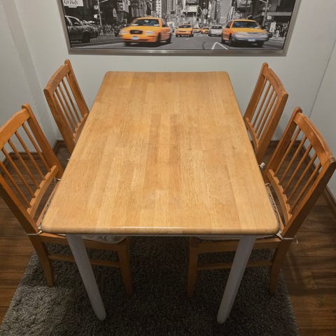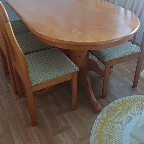 Myydään kuvanmukainen iso pöytä ja 4 tuolia. Pöydän koko 1,80 × 80 ja korkeus 73 cm. Pöydässä ja tuoleissa kromijalat, kestävä kalusto. Halutessa saa viidennen tuolin mukaan.