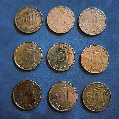Suomen 50-pennisiä vuodelta 1963-1973 11kpl: