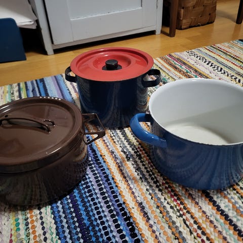 Kattila on ulkoisesti varsin ehjä. Sisäpuolikin on varsin siisti. Kannen ja kattilan yläreunassa on hieman kulumaa.