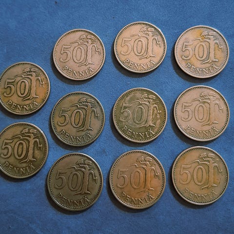 Hyväkuntoiset Suomen 50-penniset 9kpl: