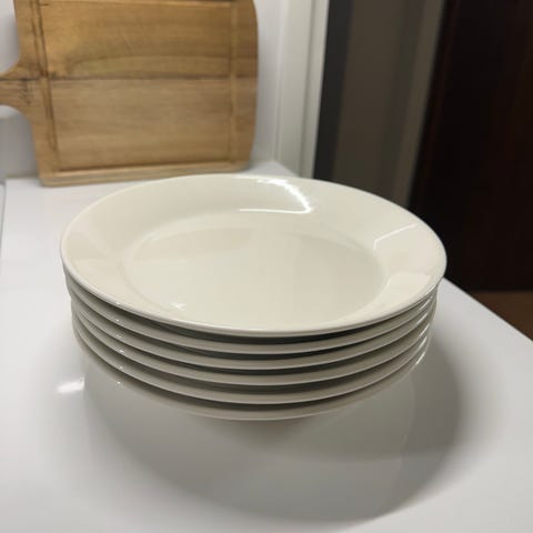4 korkeaa kahvatonta mukia ja 8 lautasta. Yhteishinta ja nouto Suikkilasta.