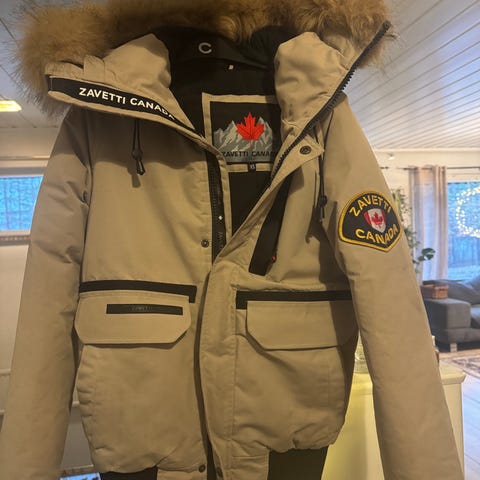 Suuret vetoketjulliset sivutaskut ja povitasku. Irroitettava karvareunus hupussa.