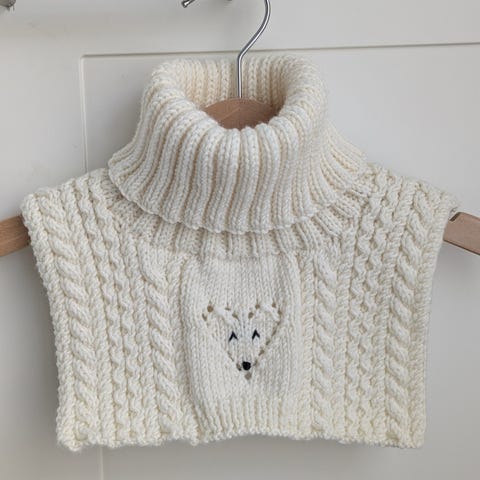 Käsin tehty kauluri, jossa on hymyilevä kettu.