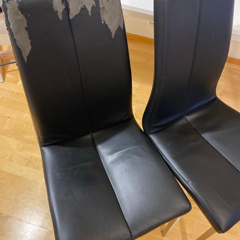 Annetaan muuton tieltä erittäin mukavat tuolit kunnostettavaksi. Kaipaa vähintäänkin pesua tai päällisten vaihtoa.