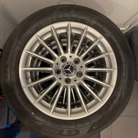 Myydään Mercedes-Benz alkuperäiset 17 tuuman vanteet. Päällä huonokuntoiset renkaat jotka saa mukaan.
