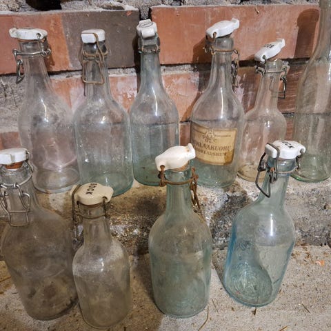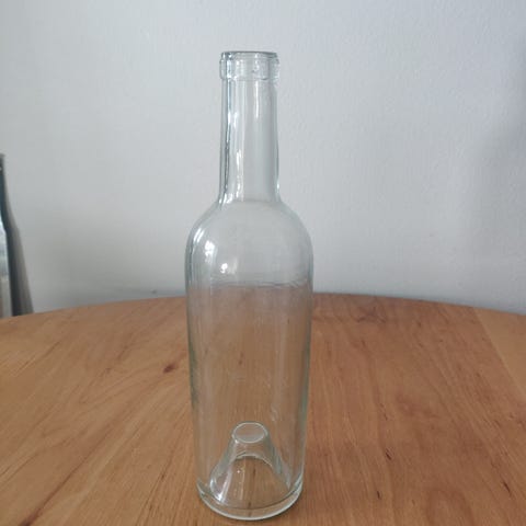 Lasi koristepullo ja lasiset pienet maljat