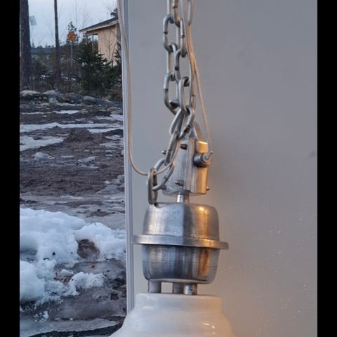 Rusta Aage Petersen kattovalaisin, jossa on beige varjostin. Valaisin on suunniteltu kattokiinnityksellä ja tarjoaa pehmeän valaistuksen huoneeseen.