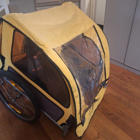 Etsinnässä pyöräkärry lapselle. Käytettykin käy, kunhan on toimiva ja turvallinen.