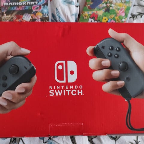 Nintendo Switch pelikonsoli lisäohjaimilla sekä lisä tavaraa