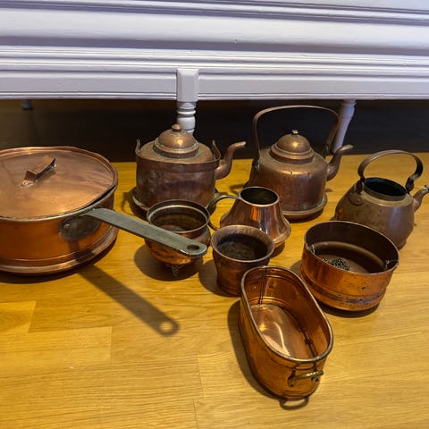Kuparisiä keittiövälineitä.