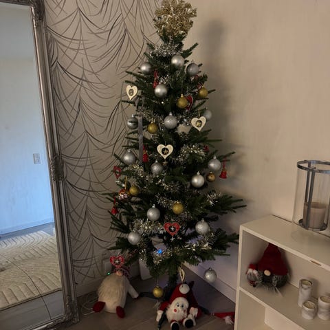 Korkeus 2 metriä. Purettavissa osiin ja pakattavissa laatikkoon. Käytetty vain kerran.