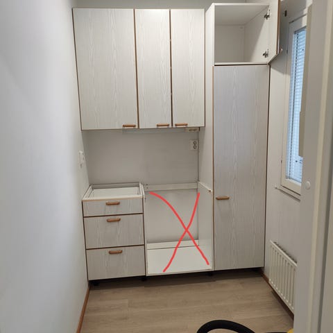 Korkeat kaapit lev 50cm ja 60cm. Laatikosto lev 40cm.