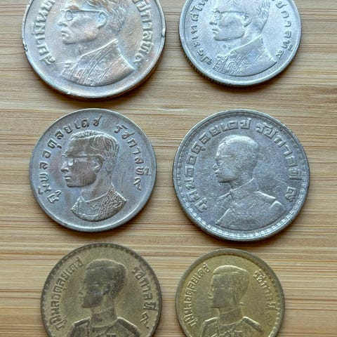 Kaikki aidot kiertokolikot, bimetallirahat magneettisella ulkorenkaalla (Thaimaa).