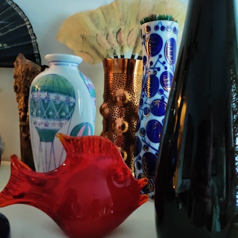 Myydään kuvanmukainen lasinen kalanmuotoinen koriste-esine.